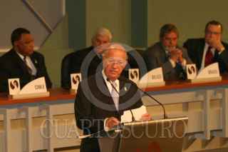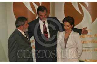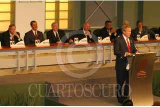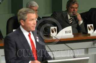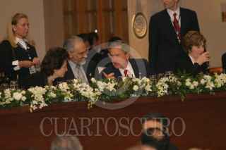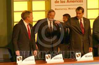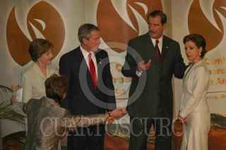 Monterrey, Nuevo León 12ENE2004 .- Momentos antes de iniciar la cena, en el Palacio de Gobierno, el presidente de Bolivia CarLos Mesa conversa con George Bush de Estados Unidos. FOTO PEDRO VALTIERRA/CUARTOSCURO.COM