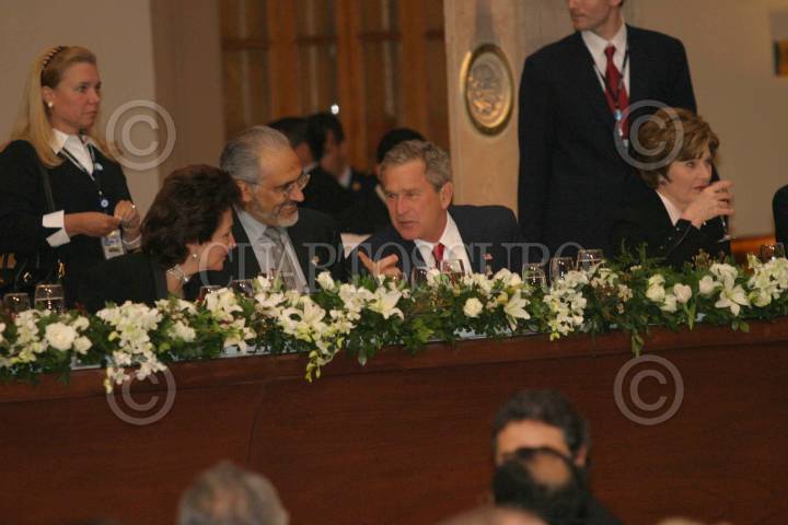 Monterrey, Nuevo León 12ENE2004 .- Momentos antes de iniciar la cena, en el Palacio de Gobierno, el presidente de Bolivia CarLos Mesa conversa con George Bush de Estados Unidos. FOTO PEDRO VALTIERRA/CUARTOSCURO.COM