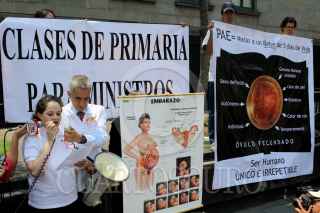 MÉXICO, D.F., 02JUNIO2010.- Jorge Serrano Limón acompañado de simpatizantes de Provida acudieron a las afueras de las Suprema Corte de Justicia de la Nación a protestar por la reciente aprobación de la Norma Oficial 046 que obliga a hospitales a brindar anticoncepción de emergencia a las víctimas de violación sexual. FOTO: RODOLFO ANGULO/CUARTOSCURO.COM