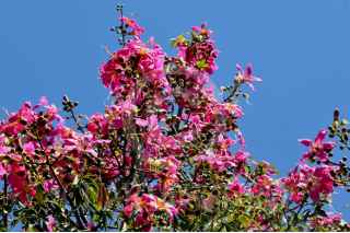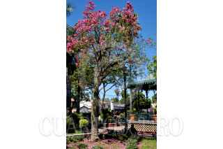 AJIJIC, JALISCO, 02JUNIO2010.- Las delicadas flores del arbol del pochote contrastan con sus gracias las ramas y el tronco recubierto de espinas inospitas de este joven arbol en la plaza del pueblo de Ajijic. FOTO:MARIA DI PAOLA BLUM/CUARTOSCURO.COM