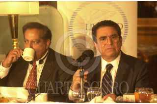 México D.F, 13ENE2004.- Sanjiv Chopra director de Educación Médica enl la escuela de Medicina de Harvard y José Luis Arredondo García, director de Lievemed Institute ofrecieron una conferencia para hablar sobre las enfermedades infecciosas que pueden ser utilizadas como armas biologicas. FOTO: Eunice Adorno/CUARTOSCURO.COM