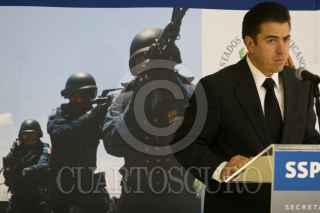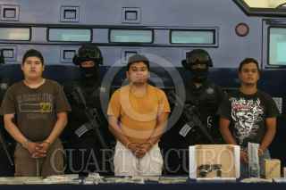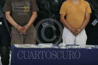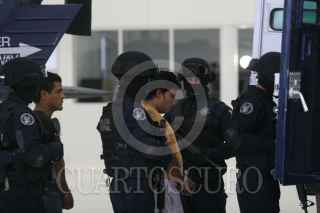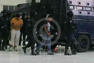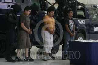 MÉXICO, D.F., 03JUNIO2010.- Elementos de la Policía Federal, presentaron ante los medios de comunicación a Eluid Vázquez Jasso, de 24 años, Juan Antonio Pintor de 21 Años y Emilio Silvestre de 20 años, dichos jóvenes según reportes de la SSPF agredieron con armas a policías federales cuando circulaban abordo de una camioneta Lincoln en el kilometro 58+500 de la carretera Matamoros Mazatlan. En el lugar del enfrentamiento dos policías federales perdieron la vida. FOTO: SAÚL LÓPEZ/CUARTOSCURO.COM