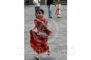 MÉXICO, D.F., 03JUNIO2010.- Familias llevan a niños vestidos con atuendos especiales para el dia de Jueves de Corpus. FOTO: ENRIQUE ORDÓÑEZ/CUARTOSCURO.COM