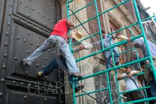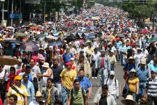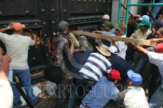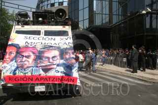 MÉXICO, D.F., 03JUNIO2010.- Maestros de la sección XVII de Michoacan y Oaxaca, así como simpatizantes del SME, se manifestaron en la Bolsa de Valores, posteriormente marcharon hasta las instalaciones de la Secretaria de Educación Pública, donde exigieron hablar con el titular Alonso Lujambio; al no recibir respuesta, trataron de ingresar a las instalaciones de la SEP; minutos después, policías federales respondieron a las agresiones de los inconformes lo que sucitó un enfrentamiento entre los uniformados y los educadores. FOTO: SAÚL LÓPEZ/CUARTOSCURO.COM