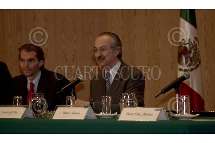 México D.F. 13 ENERO 2004.- Alonso García Tamés, subsecretario de Hacienda y Credito Público, durante su ponencia en el seminario "Financimiento del crecimiento", donde expuso acerca de los requerimeintos financieros globales. FOTO: Sandra Perdomo/CUARTOSCURO.COM