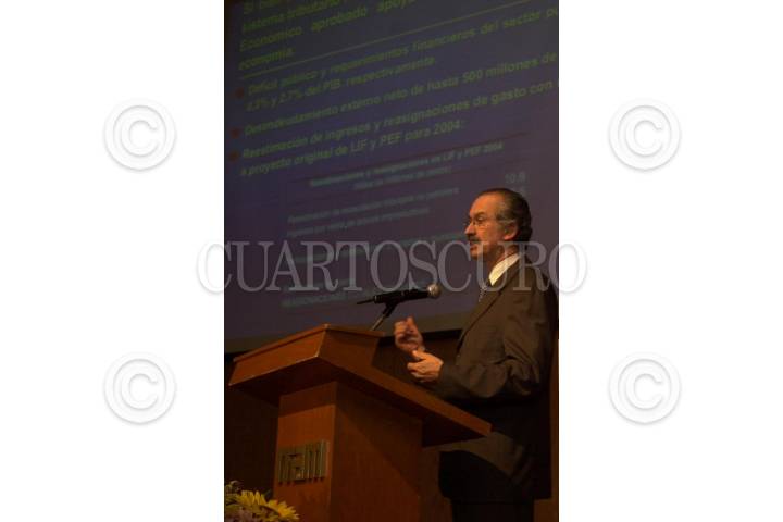 México D.F. 13 ENERO 2004.- Alonso García Tamés, subsecretario de Hacienda y Credito Público, durante su ponencia en el seminario "Financimiento del crecimiento", donde expuso acerca de los requerimeintos financieros globales. FOTO: Sandra Perdomo/CUARTOSCURO.COM