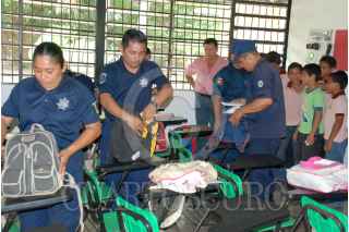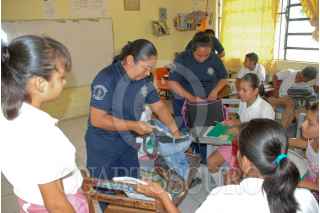 NACAJUCA, TABASCO, 03JUNIO2010.- La Dirección de la Policía municipal implementa de manera sorpresa un operativo en los distintos planteles educativos principalmente en primarias y secundarias públicas. Los uniformados revisan las mochilas de los escolares en busca de armas blancas o algún tipo de drogas. FOTO: MARCO POLO GUZMÁN HERNÁNDEZ/CUARTOSCURO.COM
