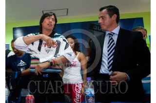 QUERETARO, QUERETARO, 03JUNIO2010.- David Angel Comizzo, fue presentado como nuevo director técnico del Club Querétaro Gallos Blancos equipo de primera división Además de los siete refuerzos para esta temporada 2010-2011; Sergio Orteman, Sergio Blanco, Julio Cesar Nava, Gabino Velazco, Jorge Adrian Cardenas, Eder Borrielli, Alexandro Luna. FOTO: DEMIÁN CHÁVEZ/CUARTOSCURO.COM