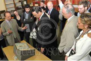 OXFORD, INGLATERRA, 03JUNIO2010.- Marcelo Ebrard, Jefe de Gobierno, inauguró en compañía de autoridades de la ciudad de Oxford la exposición “Ciudad de México: Ciudad Solidaria, Capital de Asilos”, muestra que se ha presentado en diversos países del mundo y que ahora se establece en esta ciudad londinense. En el museo Oxford Town Hall permanecerán por una temporada la serie de imágenes y textos que hacen referencia a la Ciudad de México como un espacio que ha dado acogida a exiliados y perseguidos de todas partes del mundo y a través de la historia, lo que la convierte en una ciudad solidaria que apoya la multiculturalidad y los derechos humanos. Ahí, la titular de la biblioteca invitó al Jefe de Gobierno a visitar el “Códice Mendocino”, documento del siglo XVI hecho por escribas mexicas poco después de la Conquista y que actualmente se encuentra en la biblioteca Bodleian luego de que un geógrafo inglés lo adquiriera de manos de los franceses. FOTO: CUARTOSCURO.COM