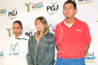 MÉXICO, D.F., 03JUNIO2010.- La Subprocuraduría de Averiguaciones Previas Centrales de la PGJDF, a través del Fiscal Especial de Investigación para la Atención del Delito de Secuestro, Oscar Montes de Oca Rosales, informaron que detuvieron a Sandra Berenice Vargas González, Juana Elizabeth Cárdenas Gutiérrez y Rafael González Quintana, quienes serán consignados ante el Juez Penal en turno, como probables responsables del delito de extorsión. FOTO: LUIS CARBAYO/CUARTOSCURO.COM