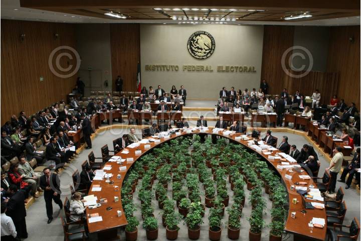 MÉXICO, D.F., 03JUNIO2010.- El consejero Virgilio Andrade conversa con Pablo Gomez durante la sesión extraordinaria del Consejo General del Instituto Federal Electoral. FOTO: CUARTOSCURO.COM