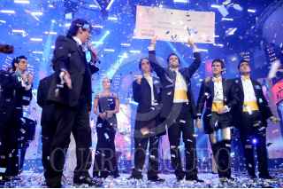 MÉXICO, DF., 07JUNIO2010.- El día de ayer por la noche se realizó la gran final de "Segunda Oportunidad", donde todo el elenco de TV Azteca se reunió para conocer al equipo ganador de la noche. El equipo amarillo conformado por Sebastián, Menny, Agustín y Óscar (en la imagen) fue el ganador de la justa y se llevo dos millones de pesos y el proyecto de ser una agrupación musical. FOTO: CUARTOSCURO.COM