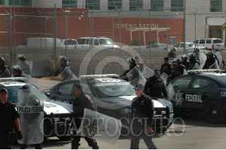 CIUDAD JUÁREZ, CHIHUAHUA, 07JUNIO2010.- Despues de registrarse una pelea entre internos del penal en el estado, donde hasta el momento, se han registrado tres muertos y dos lesionados, policias ingresaron para poner orden entre los reos. FOTO: IGNACIO RUIZ/CUARTOSCURO.COM