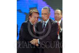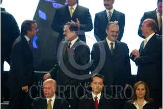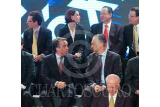 MÉXICO, D.F., 07JUNIO2010.- En la ceremonia de Presentación de la iniciativa México, asistió Emilio Azcarraga Jean, Presidente del grupo Televisa, Ricardo Salinas Pliego, Presidente del grupo salinas, Juan Francisco Ealy Ortiz. FOTO: IVAN MENDEZ/CUARTOSCURO.COM