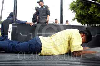 Tlalnepantla MOrelos, 14 Enero 2004.- Policias estatales detuvieron a varios de los participantes en la riña de esta madrugada entre habitantes del poblado y opositores a la designación del candidato electo del PRI, Elias Osorio Torres, luego de haber sido declarado como municipio Autónomo. FOTO:/CUARTOSCURO.COM