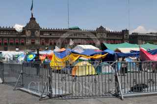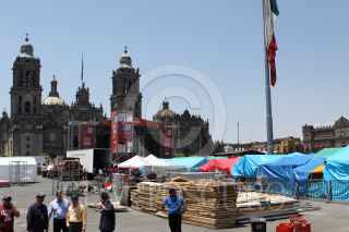 MÉXICO, D.F., 09JUNIO2010.- La pantalla gigante del FIFA Fan Fest ya fue instalada en el Zócalo capitalino, sin embargo, la mayor parte de la plancha de la Constitución la ocupa el plantón del Sindicato Mexicano de Electricistas. FOTO: RODOLFO ANGULO/CUARTOSCURO.COM