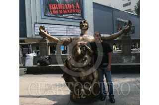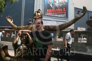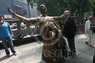 MÉXICO, D.F., 10JUNIO2010.- Jorge katthain, escultor y artista, coloco un monumento llamado, "El Aficionado" en la glorieta ubicada en la Diana Cazadora en la avenida Paseo de la Reforma. FOTO: SAUL LOPEZ/CUARTOSCURO.COM