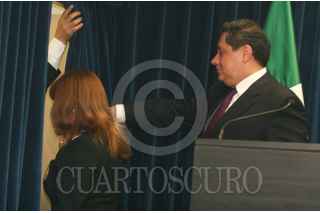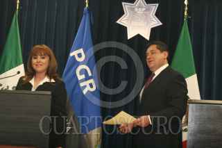 MÉXICO, D.F., 10JUNIO2010.- Maricela Morales Ibáñez, Titular de la Subprocuraduría de Investigaciones Especializada en Delincuencia Organizada (SIEDO) y Ramón Pequeño García, jefe de la División Antidrogas de la Policía Federal en conferencia con los medios de comunicación, informo que en el operativo realizado por la Marina, el decomiso que realizaron fue de materiales usados para la elaboración de Velas aromáticas. FOTO: SAUL LOPEZ/CUARTOSCURO.COM