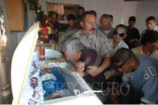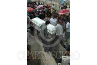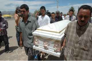 CIUDAD JUÁREZ, CHIHUAHUA, 10JUNIO2010.- Luego de ser velado el cuerpo del niño Sergio Adrián Hernández Guereca, quien fuera victimado por un elemento de la patrulla fronteriza, se realizó una misa de cuerpo presente en la iglesia de la colonia para finalmente ser trasladado al panteón donde se depositaron sus restos. Hernández Guereca fue despedido por familiares y amigos quienes con llanto en el rostro pedían justicia a las autoridades y exigieron que el culpable sea trasladado a esta ciudad para que sea aquí donde pague por el delito que cometió. FOTO: IGNACIO RUIZ/CUARTOSCURO.COM