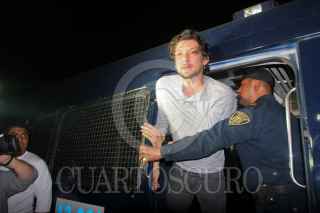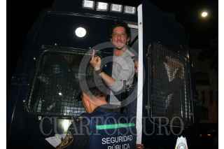 MÉXICO, D.F., 11JUNIO2010.- Leon Larregui, vocalista del grupo musical Zoe, fue detenido bajo los efectos de sustancias tóxicas y bebidas embriagantes en el punto del alcoholímetro ubicado en la esquina de Alfonso Reyes y Mazatlan en la colonia Condesa donde protagonizó disturbios y agresión a los policías así como a los medios de comunicación. FOTO: LUZ ACEVEDO/CUARTOSCURO.COM