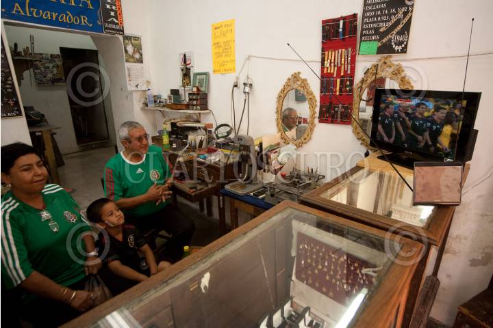 QUERETARO, QUERETARO, 11JUNIO2010.- Aficionados del fútbol soccer disfrutan en sus áreas de trabajo la inauguración y el primer partido el mundial de fútbol África 2010. Celebrado entre México y SudAfrica con un marcador final de 1-1. FOTO: DEMIAN CHAVEZ/CUARTOSCURO.COM