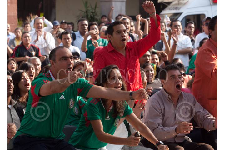 QUERETARO, QUERETARO, 11JUNIO2010.- Aficionados del fútbol soccer disfrutan en sus áreas de trabajo la inauguración y el primer partido el mundial de fútbol África 2010. Celebrado entre México y SudAfrica con un marcador final de 1-1. FOTO: DEMIAN CHAVEZ/CUARTOSCURO.COM