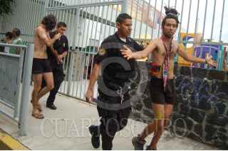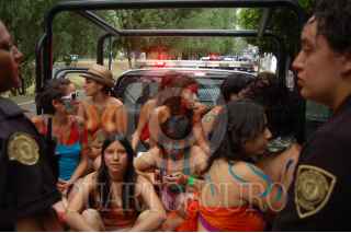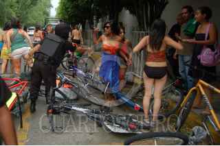 MORELIA, MICHOACAN, 12JUNIO2010.- Diecinueve ciclistas fueron detenidos por faltas a la moral, quienes recorrieron al menos ocho cuadras de la Avenida Solidaridad manifestando su inconformidad por la utilización de vehículos automotores dentro de la Marcha Rodada Mundial Ciclista al Desnudo, en el operativo participaron al menos 30 elementos policiales. FOTO: LEOVIGILDO GONZALEZ/CUARTOSCURO.COM