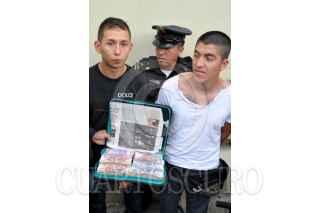 MÉXICO, D.F., 12JUNIO2010.- Tres sujetos fueron detenidos por elementos de la policía del Sector Pantitlan, en posesión de 17 paquetes de 50,000.00 pesos cada uno que suman un total de 750,000.00 pesos. Elementos de este sector, al ubicar a dichos sujetos sobre las calles Oriente 247 y Zaragoza en la colonia Agrícola Oriental, abordo de una motocicleta deportiva y sin placas le marcan el alto para una revisión de rutina, por lo que intentaron darse a la fuga siendo asegurados de inmediato, al revisarles se les descubre la maleta con el efectivo del cual no acreditan su procedencia por lo que fueron puestos a disposición del ministerio publico en la Delegación Iztacalco FOTO: LUIS CARBAYO/CUARTOSCURO.COM