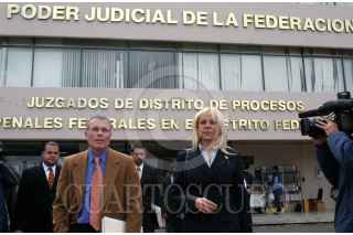 México, D.F.,26ENERO2004.- El exlíder petrolero Carlos Romero Deschamps, acusado de peculado electoral no acudió al segundo citatorio que le hizo el juez decimotercero de procesos penales del Reclusorio Sur. Los únicos que acudieron a la cita fueron sus abogados Juan Velazquez y Odet Mubarak, quienes precisaron que no era necesario que su cliente se presentará. Sin embargo, se le hará un tercer citatorio, en el cual se podría utilizar a elementos de la AFI para llevarlo a comparecer. FOTO: Moisés Pablo/CUARTOSCURO.COM