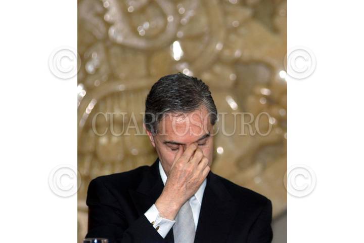 MEXDF27ENERO2004.- La cancilleria mexicana anuncio el cese de Carlos Flores representante permanente en la OCDE. Luis Ernesto Derbez secretario de Relaciones Exteriores durante el evento de firma de convenio entre Sedesol, Union Europea y el gobierno de Chiapas. FOTO: Germán Romero/CUARTOSCURO.COM