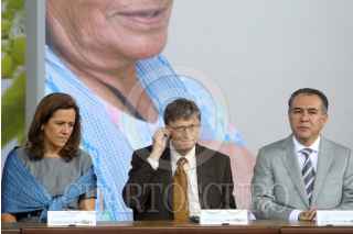 MÉXICO, D.F., 14JUNIO2010.- Bill Gates, presidente de la fundación Bill y Melinda Gates, durante la ceremonia de lanzamiento de la iniciativa Salud Mesoamericana 2015, en el Museo de Antropología. FOTO: MOISÉS PABLO/CUARTOSCURO.COM