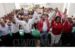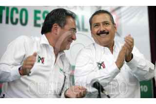 AGUASCALIENTES, AGUASCALIENTES, 14JUNIO2010.- Manlio Fabio Beltrones, coordinador de la bancada del PRI en el Senado, en gira por el estado, acompaño a Carlos Lozano, candidato a la gubernatura de la entidad en un mitin de campaña. FOTO: CUARTOSCURO.COM