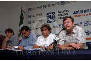 MÉRIDA, YUCATAN, 14JUNIO2010.- Hugo Laviada Peniche el sustituto de la ex candidata a la alcaldia de Mérida Beatriz Zavala Peniche en el senado de la República, se reunió con la directiva estatal del Partido Acción Nacional (PAN), para hacer público las anomalías en las pasadas elecciones del 16 de mayo, así como las fuentes de interés y las consecuencias que podría ocasionar la unión de la policía municipal de Mérida con la policía Estatal y quedar la seguridad del Estado en manos del director de la Secretaria de Seguridad Pública, Luis Saidén Ojeda. FOTO: FRANCISCO BALDERAS/CUARTOSCURO.COM