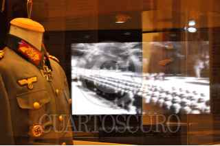 CHAPALA, JALISCO, 14JUNIO2010.- La exposición “El tren y la guerra” se inauguro en el Centro Cultural González Gallo, en la ex estación del ferrocarril de esta ciudad. Jesús Alejandro Cravioto Lebrija, secretario de Cultura del estado y Jesús Cabrera Jimenez, Presidente municipal de Chapala, Jesús Cabrera Jiménez y el director del proyecto expositivo Claudio Boccherini, presidente de la asociación Italiana Del Tren Europeo Roma Italia que trajo a México la exposición con el fin de dar vida a un museo internacional del tren. donde se muestran tambien, dos videos históricos de la segunda guerra mundial, a lado de los trenes y uniformes nazis completan esta primera etapa del proyecto donde se pueden apreciar las replicas en escala de los trenes que fueron el medio de transporte de Mussolini, Hitler, el presidente Roosvelt quien utilizo el tren desde Laredo Texas a Monterrey México. FOTO:MARIA DI PAOLA BLUM/CUARTOSCURO.COM