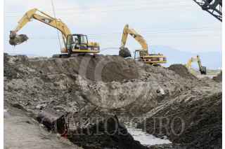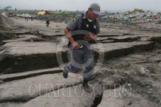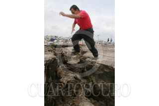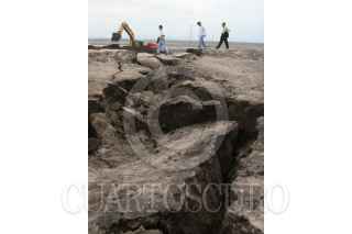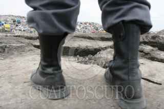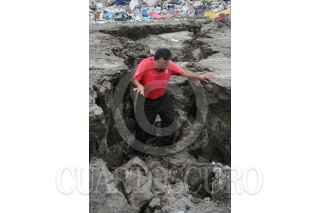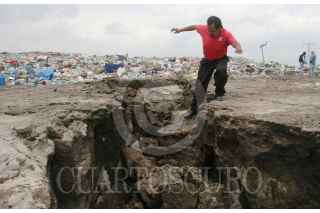 CHIMALHUACÁN, ESTADO DE MÉXICO, 16JUNIO2010.- Trabajadores de la CAEM, protección civil policías municipal y estatal, trabajan en el lugar donde se suscitó un fracturamiento geológico ocasionado por una explosión de gas metano que causo grietas de más de 1 kilómetro en el tiradero municipal de Chimalhuacan. FOTO: SAÚL LÓPEZ/CUARTOSCURO.COM