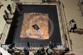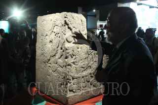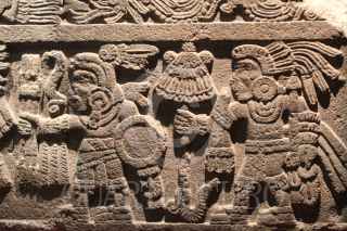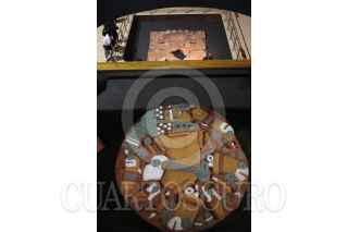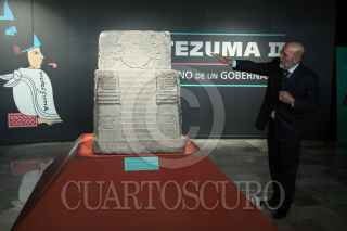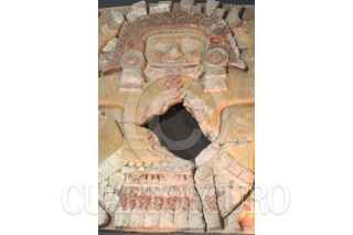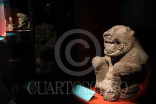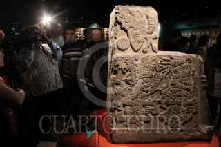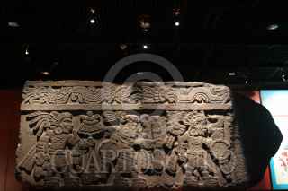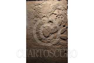 MÉXICO, D.F., 16JUNIO2010.- En primer plano la Coyolxauhqui con su coloración original al fondo el monolito de la Tlaltecuhtli que representa la imagen de la Diosa Terrestre de la época imperial, es decir, a las décadas previas a la conquista española. Esta pieza fue rescatada en el año 2006 en la esquina de Argentina y Guatemala y mide 4.17 x 3.68 x 0.38 metros y pesa 12 toneladas. FOTO: MOISÉS PABLO/CUARTOSCURO.COM