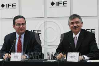 MÉXICO D.F., 17JUNIO2010.- José Luis Alcudia Goya, Coordinador Nacional de Comunicación Social y Leonardo Valdés Zurita, Consejero Presidente del Instituto Federal Electoral en la conferencia de prensa realizada el día de ayer. FOTO: CUARTOSCURO.COM