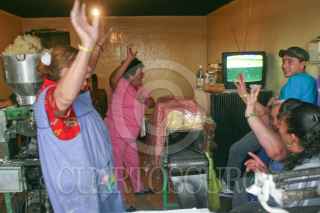 MEXICO D.F., 16 JUNIO2010.- Miles de personas observaron el partido de fútbol entre México y Francia desde sus negocios como lo hicieron las encargadas de una tortilleria en la avenida Centenario en la delegación Alvaro Obregón. FOTO: SAÚL LÓPEZ/CUARTOSCURO.COM