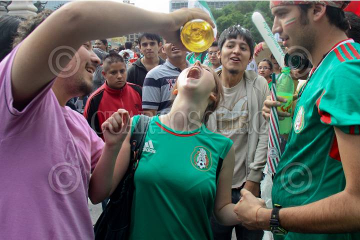 MÉXICO, D.F., 17JUNIO2010.- Cientos de aficionados se congregaron en la glorieta del Ángel de la Independencia para celebrar el triunfo de la Selección Mexicana ante su similar de Francia en su segundo partido de eliminatorias del mundial de Sudáfrica, la gente celebró por más de cuatro horas presentándose incidentes de violencia menores que fueron contenidos por los granaderos de la Secretaría de Seguridad Pública. FOTO: LUIS CARBAYO/CUARTOSCURO.COM
