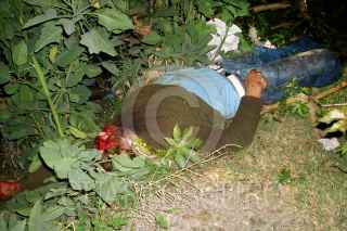 IXTAPALUCA, ESTADO DE MÉXICO, 17JUNIO2010.- Un sujeto de aproximadamente 18 años de nombre Erick Elisalde Herrera, fue ejecutado con varios piquetes de arma blanca y al parecer le desprendieron rostro y ojos, el cuerpo fue abandonado en Avenida del Árbol y Canal, en la colonia El Molino Municipio de Ixtapaluca. Vecinos del lugar indicaron que en el lugar se detuvo un auto Volks Waguen sedan en color blanco de donde al parecer bajaron el cadáver. De este asunto quedo detenido Ricardo Ángeles Salgado como presunto responsable de este homicidio que viajaba en calles cercanas en el auto antes mencionado. FOTO: LUIS CARBAYO/CUARTOSCURO.COM