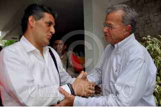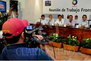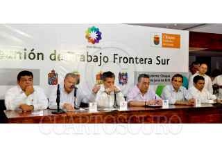 TUXTLA GUTIÉRREZ, CHIAPAS, 18JUNIO2010.- En esta ciudad capital se sostuvo la reunión de Trabajo Frontera Sur. En la imagen se saludan, Andrés Granier Melo de Tabasco y Juan Sabines Guerrero de Chiapas. FOTO: MARCO POLO GUZMÁN HERNÁNDEZ/CUARTOSCURO.COM