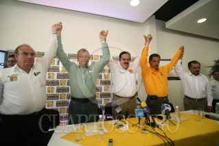ZACATECAS, ZACATECAS, 18JUNIO2010.- Manuel Camacho Solis, Coordinador nacional del Diálogo para la reconstrucción de México junto a Antonio Mejia Haro, Candidato a la gubernatura del estado y Jesus Ortega Martinez, Presidente Nacional del PRD, durante la conferencia de prensa que realizaron para expresar total respaldo a la candidatura de Mejía Haro. FOTO: CUARTOSCURO.COM