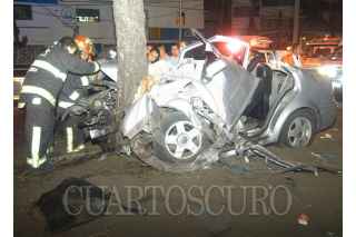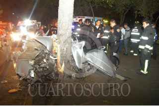 MÉXICO, D.F., 19JUNIO2010.- Esta madrugada un automóvil que viajaba a exceso de velocidad se estrelló contra un árbol. El conductor de aproximadamente 25 años quedó atrapado durante más de 40 minutos y murió camino al hospital. El accidente ocurrió sobre Viadcuto Tlalpan en la colonia San Lorenzo Huipulco en la delegación Tlalpan FOTO: LUZ ACEVEDO/CUARTOSCURO.COM