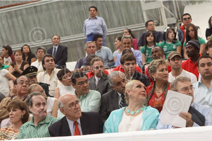 MÉXICO, D.F., 19JUNIO2010.- Felipe Muñoz, titular del Comité Olimpico Mexicano y Carmelita, viuda del clavadista mexicano Joaquín Capilla, ganador de diversas medallas olímpicas obtenidas en distintos Juegos Olímpicos, Centroamericanos y Panamericanos, al termino de un homenaje póstumo que se celebró en la fosa de clavados de las instalaciones del Comité Olímpico Mexicano. FOTO: RODOLFO ANGULO/CUARTOSCURO.COM