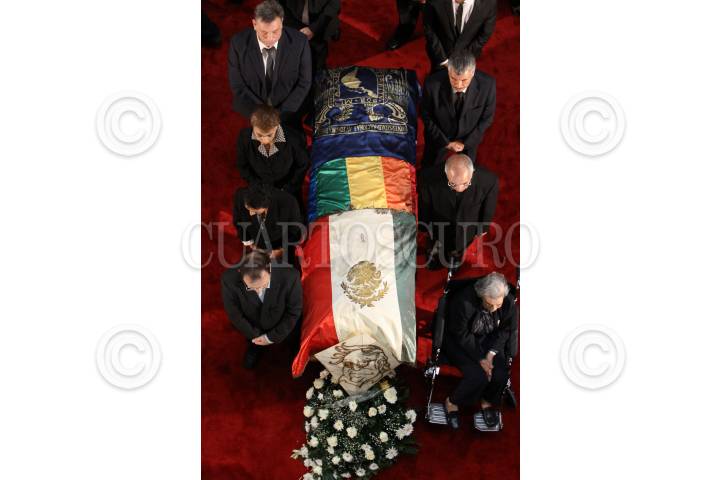 MÉXICO, D.F., 20JUNIO2010.- El féretro con los restos del escritor mexicano Carlos Monsiváis salio del Palacio de Bellas Artes en donde amigos, colegas, familiares y público en general le rindieron un homenaje después de haber fallecido el día de ayer por problemas respiratorios. FOTO: RODOLFO ANGULO/CUARTOSCURO.COM