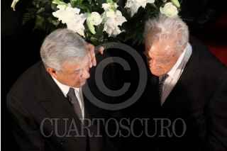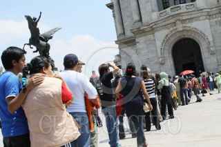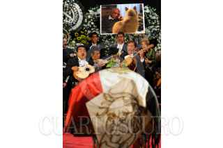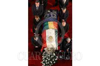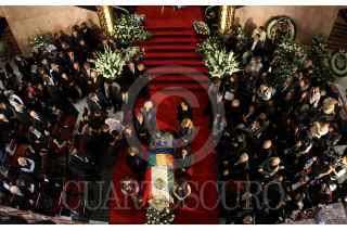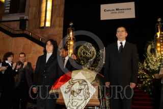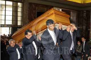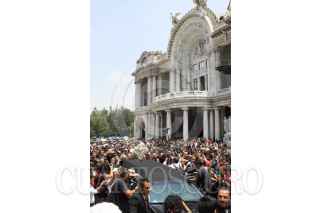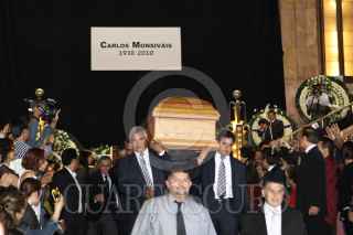 MÉXICO, D.F., 20JUNIO2010.- El féretro con los restos del escritor mexicano Carlos Monsiváis salio del Palacio de Bellas Artes en donde amigos, colegas, familiares y público en general le rindieron un homenaje después de haber fallecido el día de ayer por problemas respiratorios. FOTO: RODOLFO ANGULO/CUARTOSCURO.COM