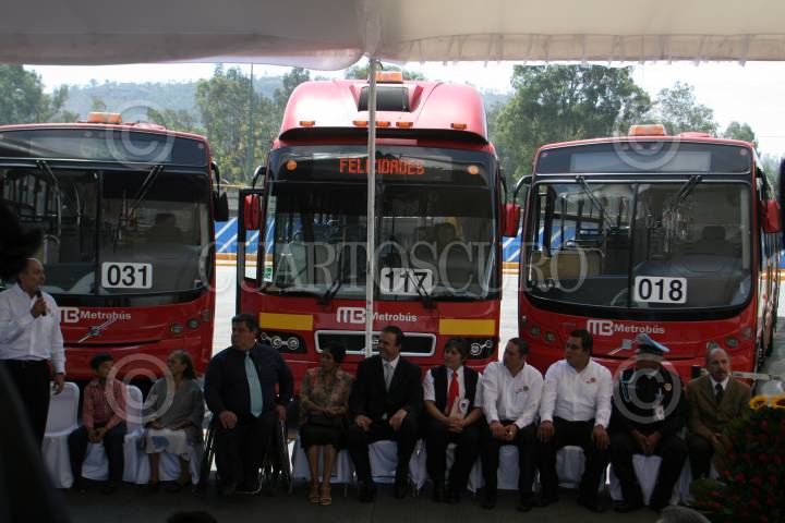 MÉXICO, D.F., 21JUNIO2010.- Marcelo Ebrard Casaubon, Jefe de Gobierno Capitalino, Realizo un recorrido por las instalaciones de mantenimiento del metrobus Indios Verdes como parte del 5to aniversario de este transporte. FOTO: ENRIQUE ORDOÑEZ/CUARTOSCURO.COM