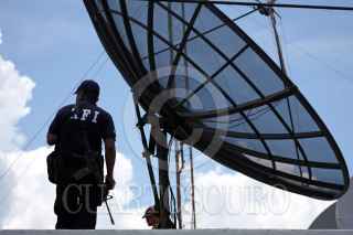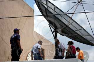 MÉRIDA, YUCATÁN, 23JUNIO2010.- Agentes de la AFI y de la SSP realizaron un operativo en una sucursal de “SKY”, ubicada en la calle 7 # 375 de la colonia Residencial Pensiones, por presunto comercio ilegal de señal de televisión. En el operativo participaron aproximadamente siete patrullas antimotines que rodearon el lugar, así como peritos de la AFI que fotografiaron las 7 antenas que se encontraban en la parte superior del local y sus oficinas. FOTO: FRNACISCO BALDERAS/CUARTOSCURO.COM