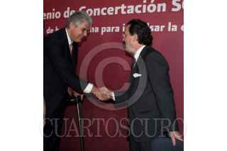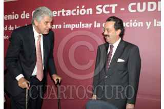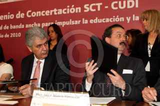 MÉXICO, D.F., 23JUNIO2010.- Alfredo Elias Ayub, titular de la Comisión Federal de Electricidad y Juan Molinar Horcasitas, secretario de Comunicaciones y Transportes durante la firma de Convenio de Concertación SCT - CUDI, una red de banda ancha para impulsar la educación y la investigación en México que se realizo en el Museo Tecnológico de la Comisión Federal de Electricidad. FOTO: RODOLFO ANGULO/CUARTOSCURO.COM