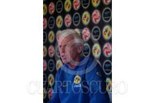 México, D. F. 31 ENE 2004.- El director técnico del América Leo Beenhakker habla sobre el desempeño del equipo al finalizar el entrenamiento en las instalaciones de Coapa. FOTO:Iván Stephens/CUARTOSCURO.COM